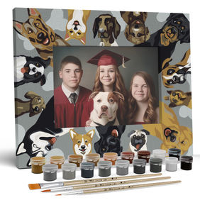 The friendly dog frame; although it was one of the more challenging designs, it makes me smile the most. I wanted to be considerate with the dog breeds I incorporated as well as how can we have 14 dogs, and reuse the paints and still making sure they look distinct. It was also a challenge to design them in a way where you can still see their unique feature without making too many small areas that might of been trickier to paint and to read the numbers.